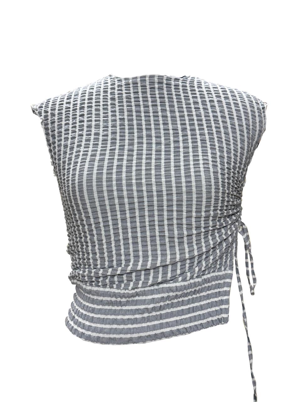 The Ash Top is crafted from textured seersucker fabric, bringing subtle structure and ease together. Designed with a boat neckline and sleeveless silhouette, it features an asymmetrical waist on both the front and back for a sculpted yet effortless shape. The length can be adjusted, allowing you to play with the cut and drape to suit your look.