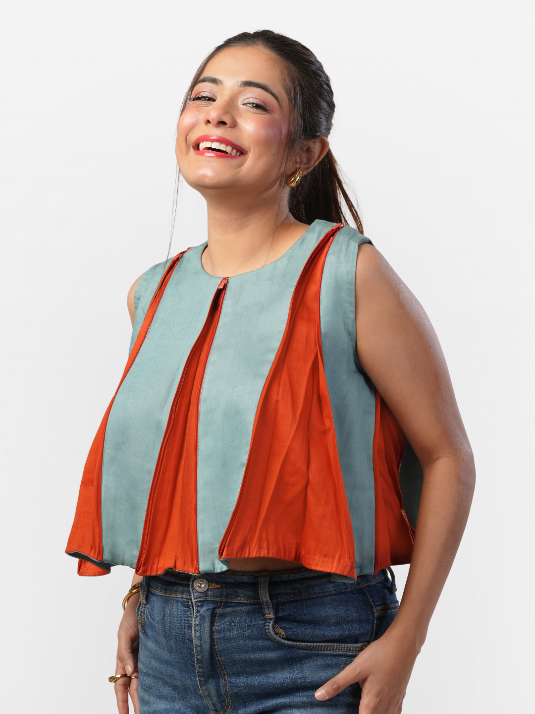 Featuring 8 zippered openings with godets, this top allows you to style it however you like—adjusting the fit and flair to suit your curves, occasion, or mood. Whether you’re going for a sleek, fitted look or a more relaxed vibe, the Laura Top adapts effortlessly.