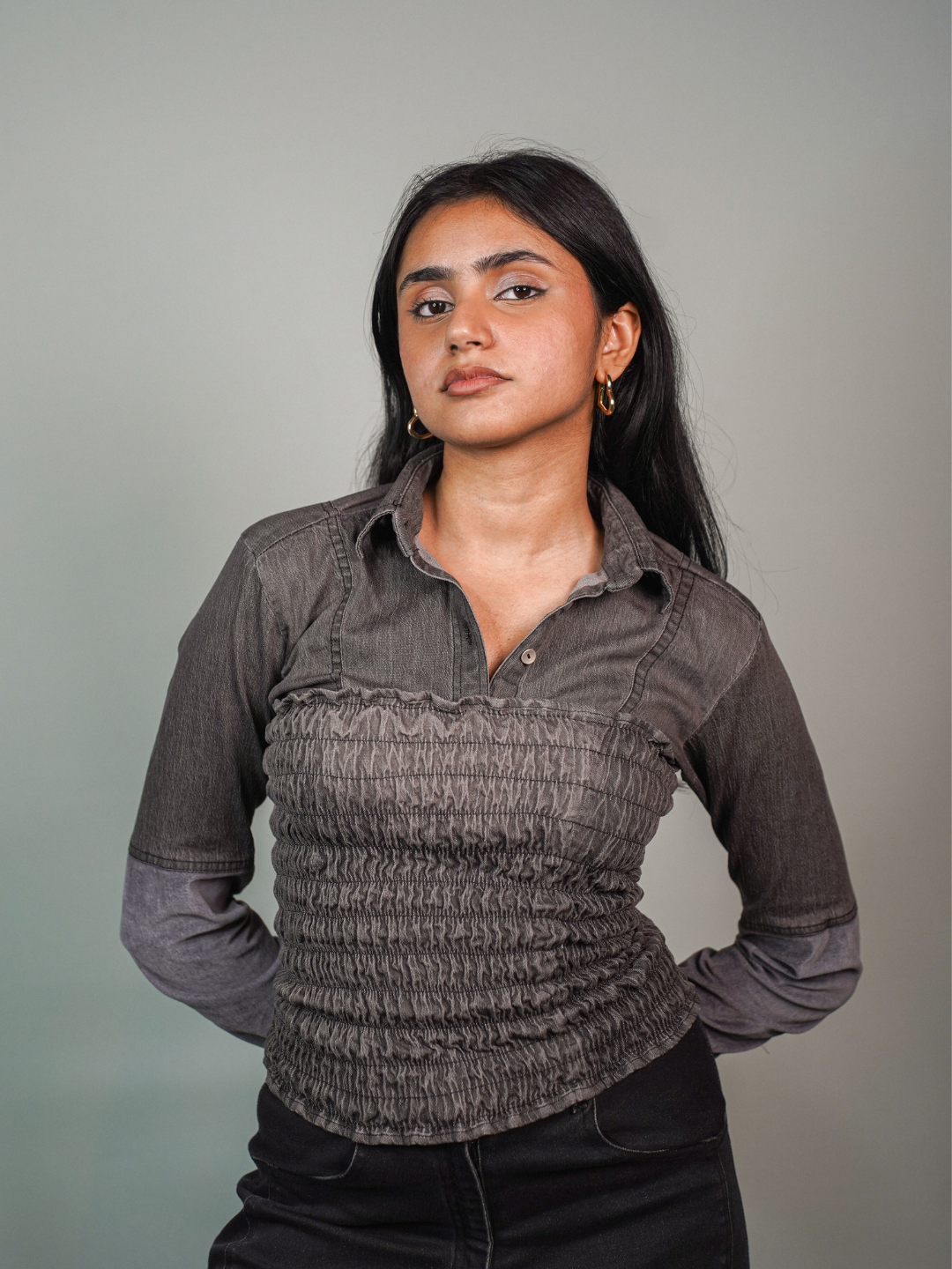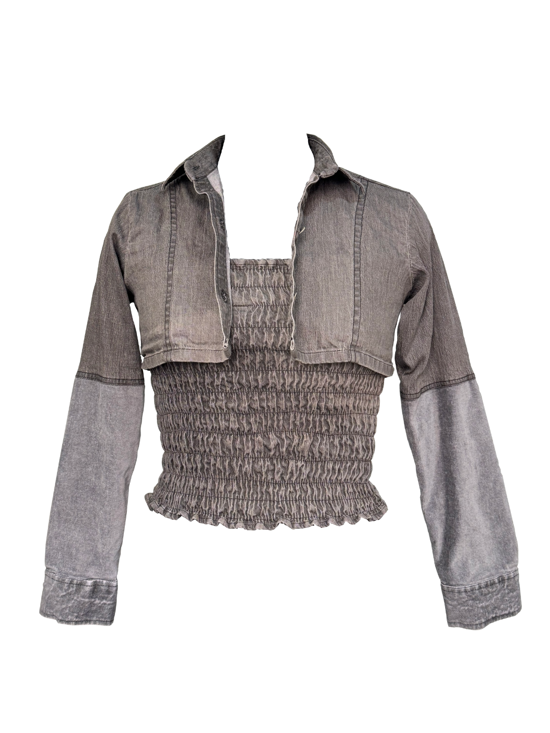 A top that blurs the line between structured and playful, the Sara Top in Black Denim is a two-piece statement made for effortless styling. Featuring a stretchable tube and a cropped shirt, both crafted in pure black denim, this look brings ease and edge together.
