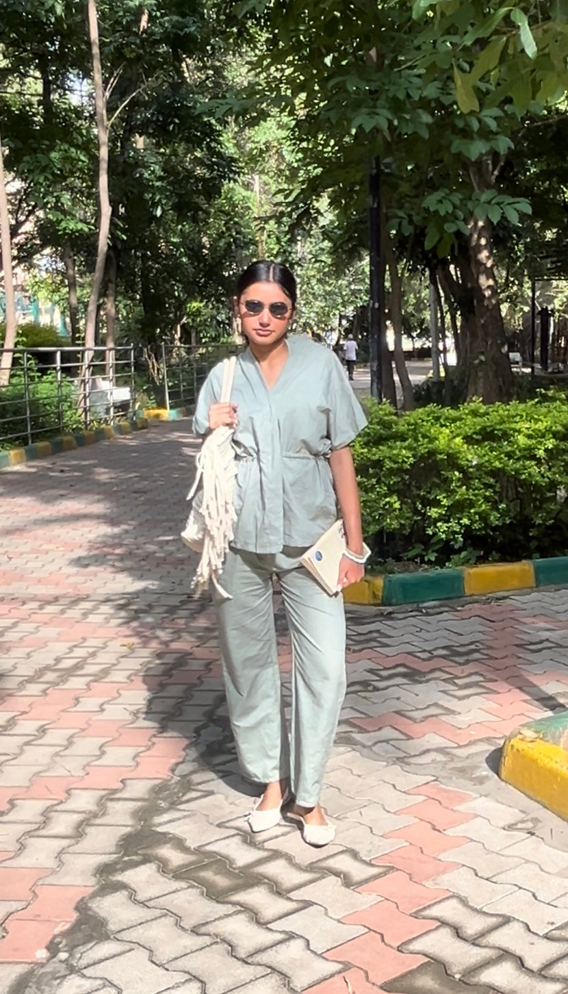 Crafted in breathable sage linen, this versatile piece is designed for comfort and ease. Featuring a relaxed drop shoulder and an adjustable waist that can be cinched as much as you like, it flatters every form. Wear it closed using the hidden front hooks or leave it open as a lightweight shrug or jacket. Whether layered or worn solo, it’s a wardrobe staple made for effortless styling and everyday wear.