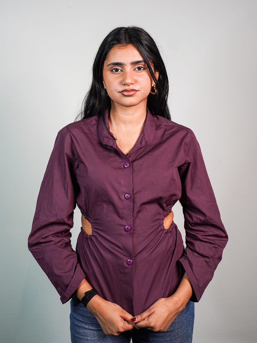 Meet the Valerie Shirt, where minimalism meets a playful edge. Crafted from soft, breathable cotton, this piece blends structure with subtle statement details. The waist features delicate cut-out detailing on both sides that continues to the back, finished with a soft tie-up, creating an elegant and feminine silhouette. The sleeves come with an adjustable drawstring, letting you gather one side for an asymmetrical flair or keep it clean and classic. It’s effortlessly versatile and perfect for when you want your outfit to speak softly, but leave a lasting impression.